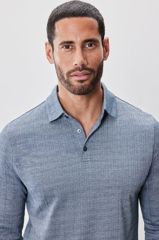 The Barakett Long Sleeve Herringbone Polo - Dark Caspian