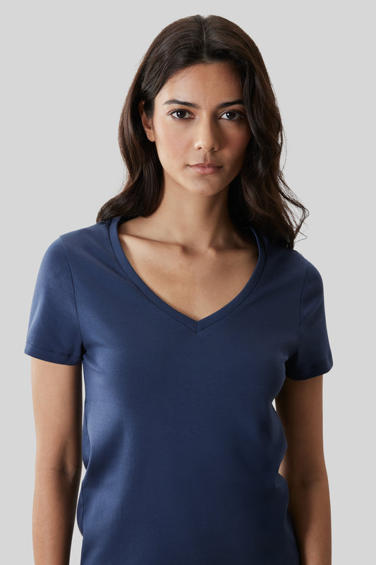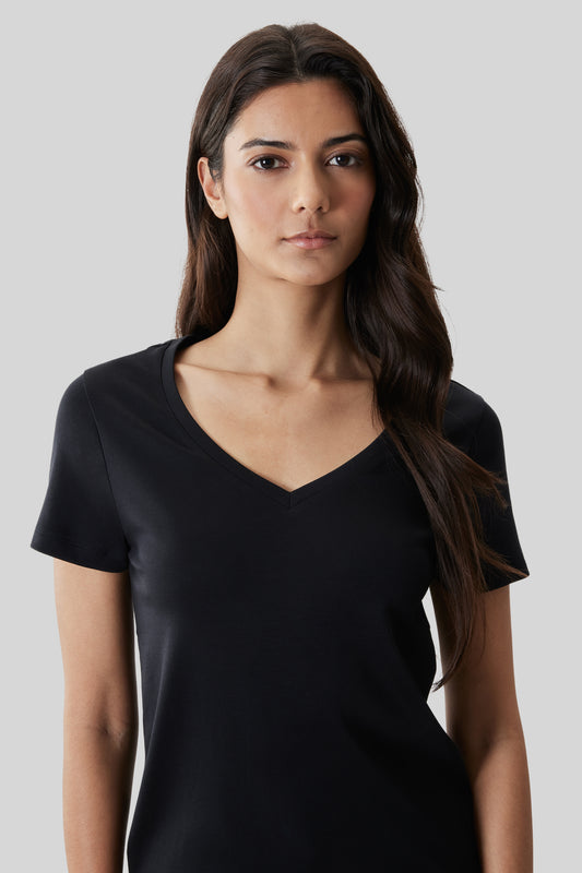 Introducing the Barakett Women's V-Neck Tee. Featuring a flattering V-neckline and a slim fit, this women's T-shirt is crafted from our signature USA-grown Pima Cotton.