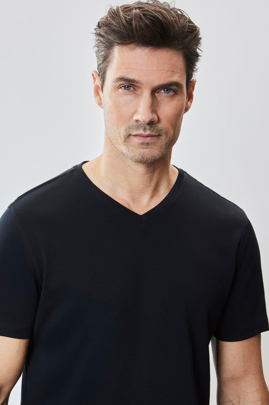 Fabriqué à partir de notre tissu exclusif en coton Pima avec traitement Soft Water, le t-shirt Barakett V offre le summum du confort moelleux, une expérience tactile opulente et un look impeccable. Un ajout flexible à la collection de tout homme, le col en V le plus confortable de tous les temps rehaussera n'importe quelle tenue.
