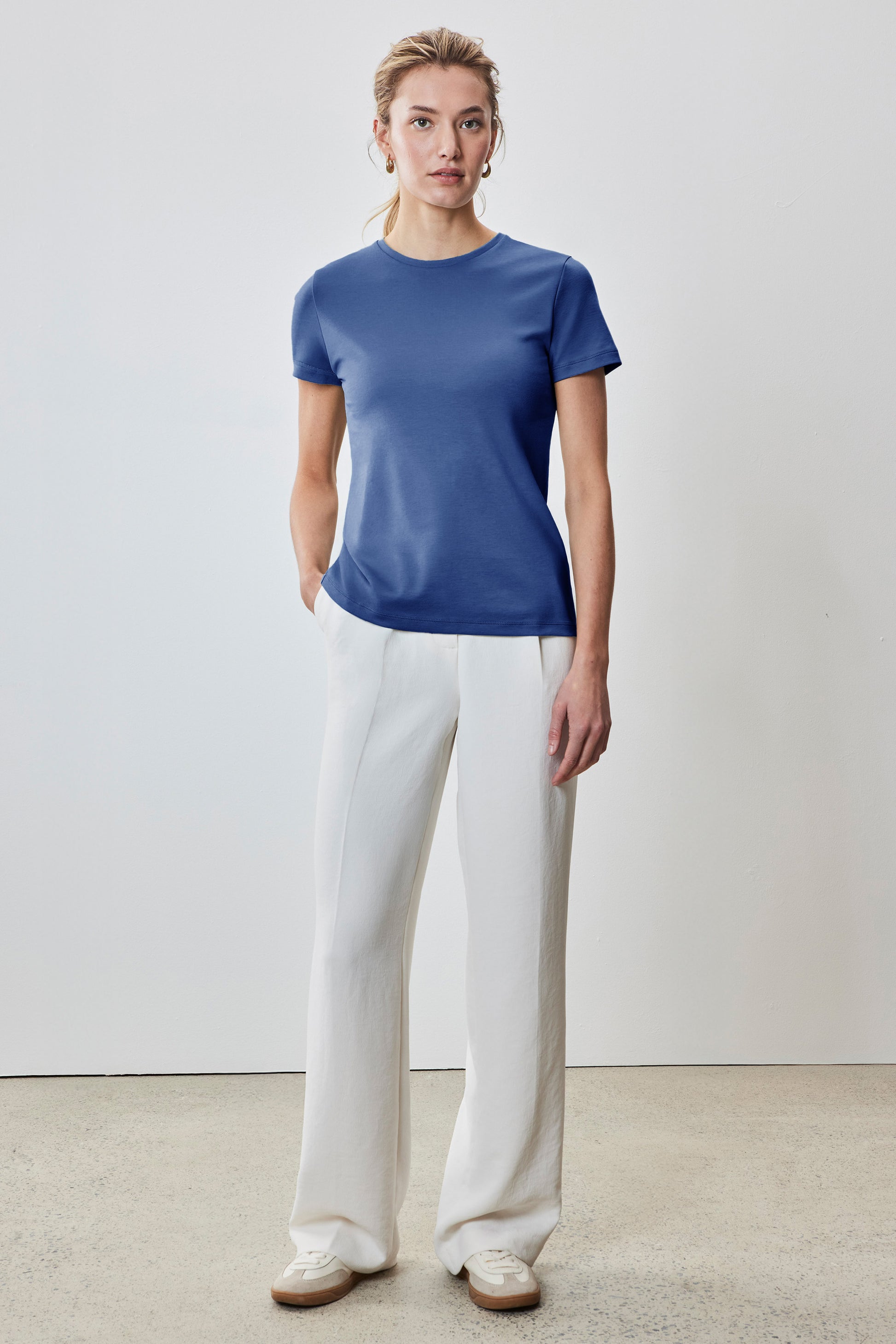 Présentation du t-shirt Barakett pour femme. Doté d'un décolleté plus subtil et d'une coupe plus ajustée, notre t-shirt pour femme est fabriqué à partir de notre coton Pima exclusif cultivé aux États-Unis et utilise une finition Soft Water pour créer le summum du confort, une sensation de main luxueuse et une apparence propre. Le meilleur t-shirt habillé, il est parfait seul ou comme pièce de superposition universelle.