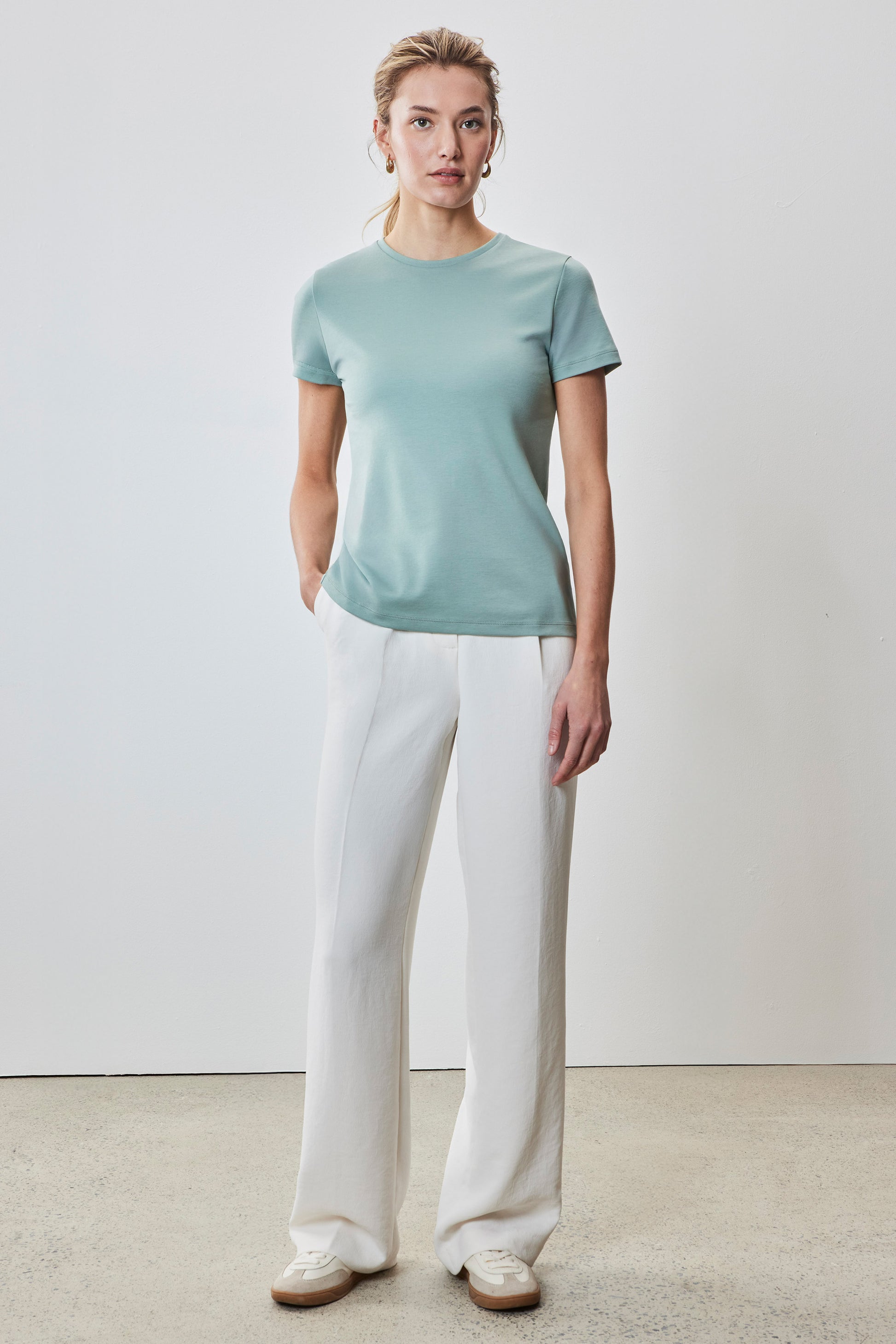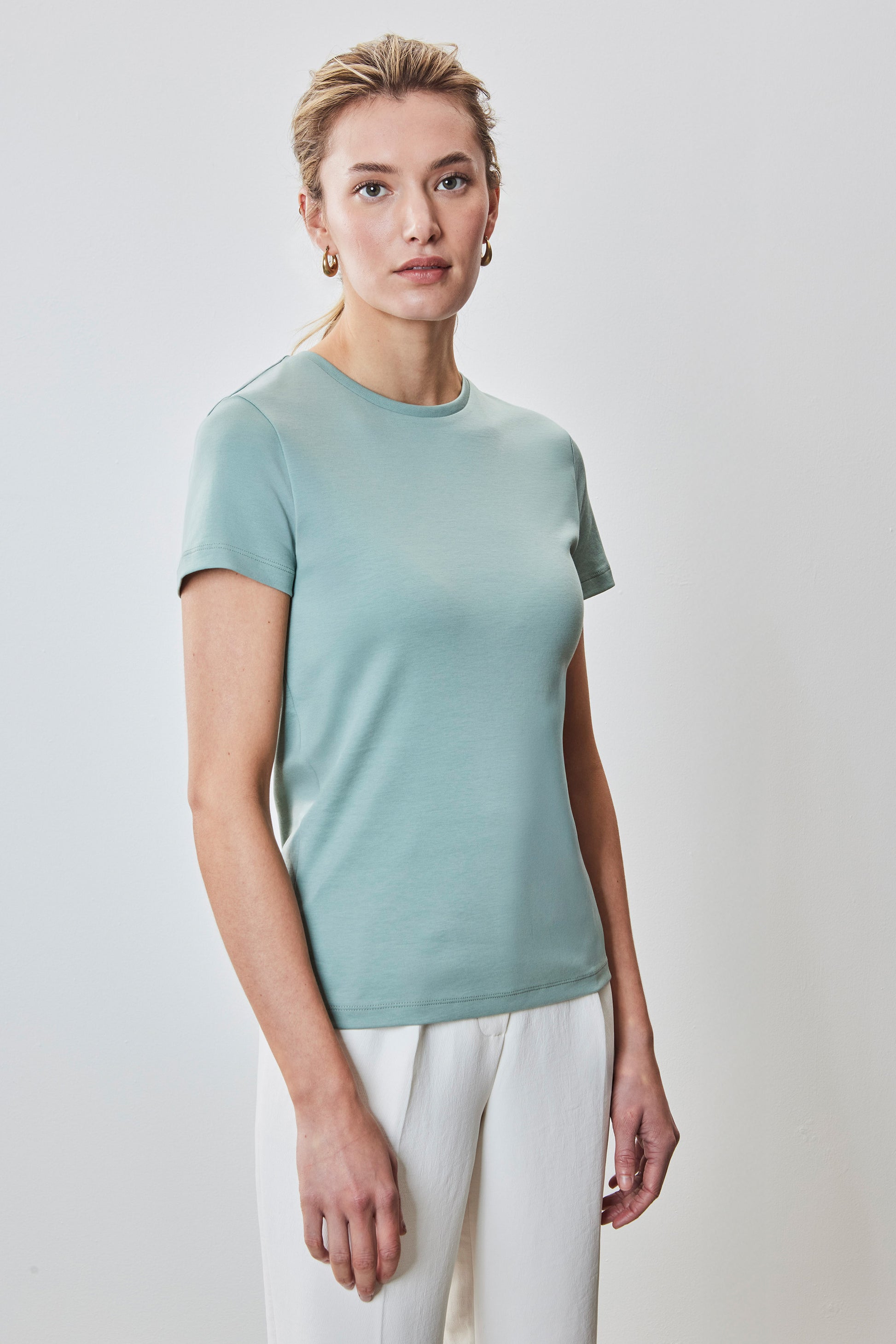Présentation du t-shirt pour femme Barakett. Doté d'un décolleté plus subtil et d'une coupe plus ajustée, notre t-shirt pour femme est fabriqué à partir de notre coton Pima exclusif cultivé aux États-Unis et utilise une finition Soft Water pour créer le summum du confort, une sensation de main luxueuse et une apparence propre. Le meilleur t-shirt habillé, il est parfait seul ou comme pièce de superposition universelle.