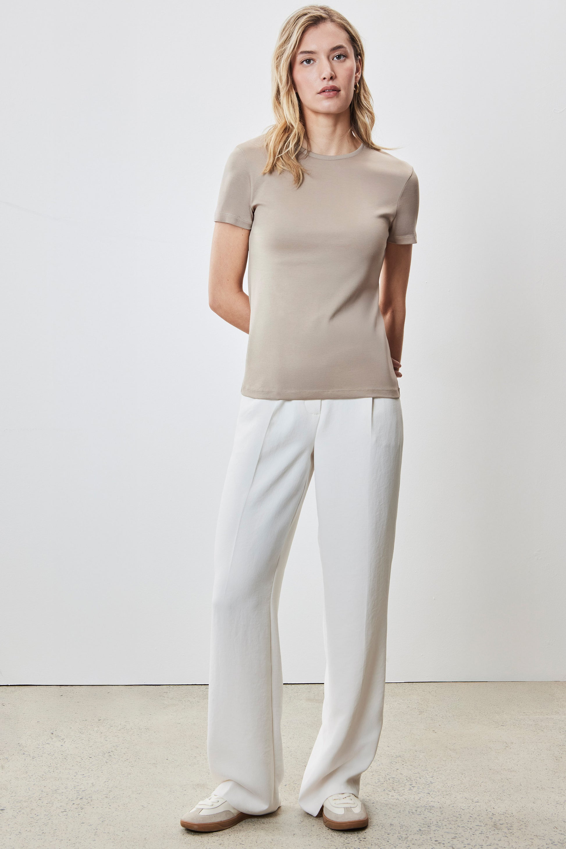 Je vous présente le Barakett T-shirt pour femme. Doté d'un décolleté plus subtil et d'une coupe plus ajustée, notre t-shirt pour femme est fabriqué à partir de notre coton Pima exclusif cultivé aux États-Unis et utilise une finition Soft Water pour créer le summum du confort, une sensation de main luxueuse et une apparence propre. Le meilleur t-shirt habillé, il est parfait seul ou comme pièce de superposition universelle .