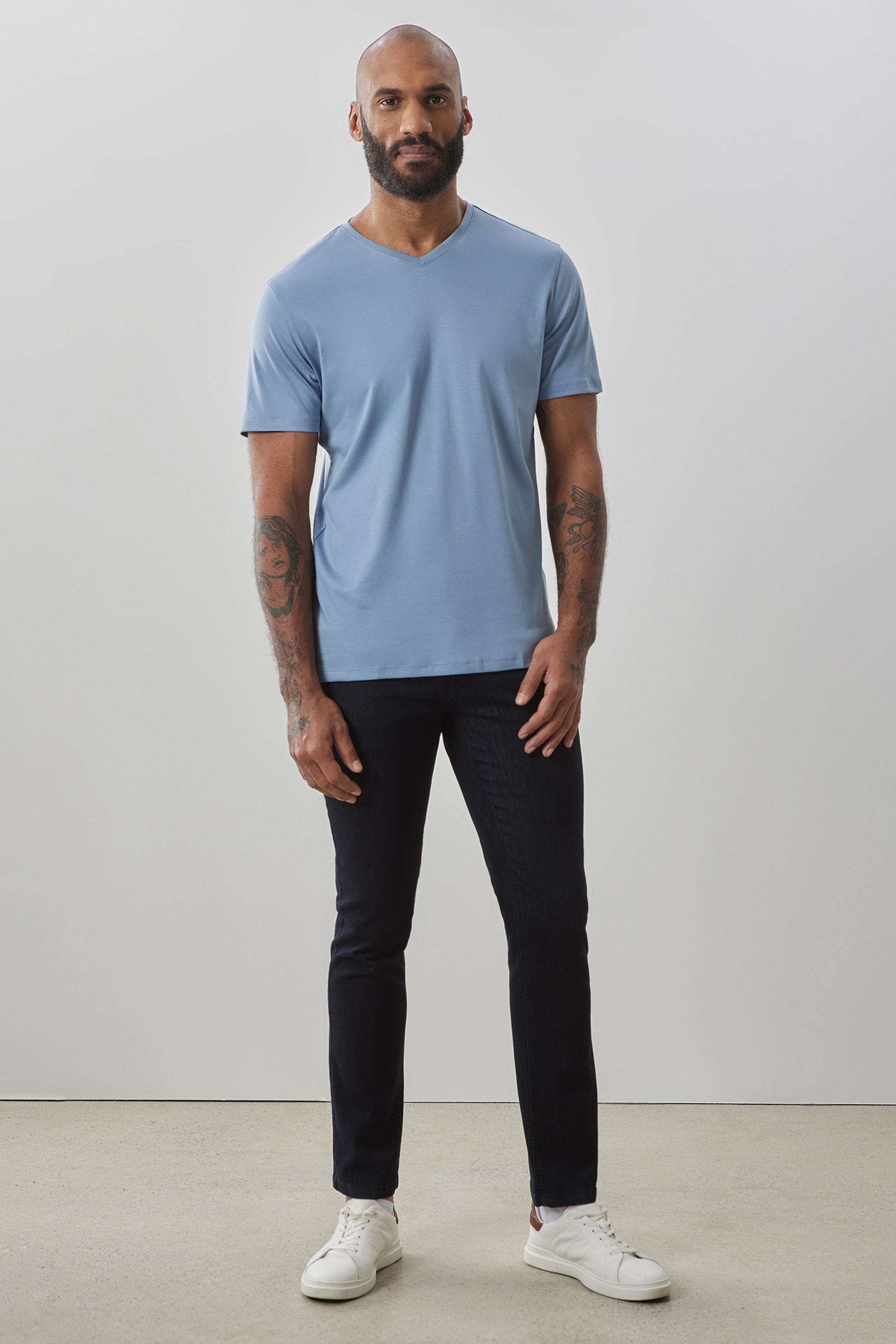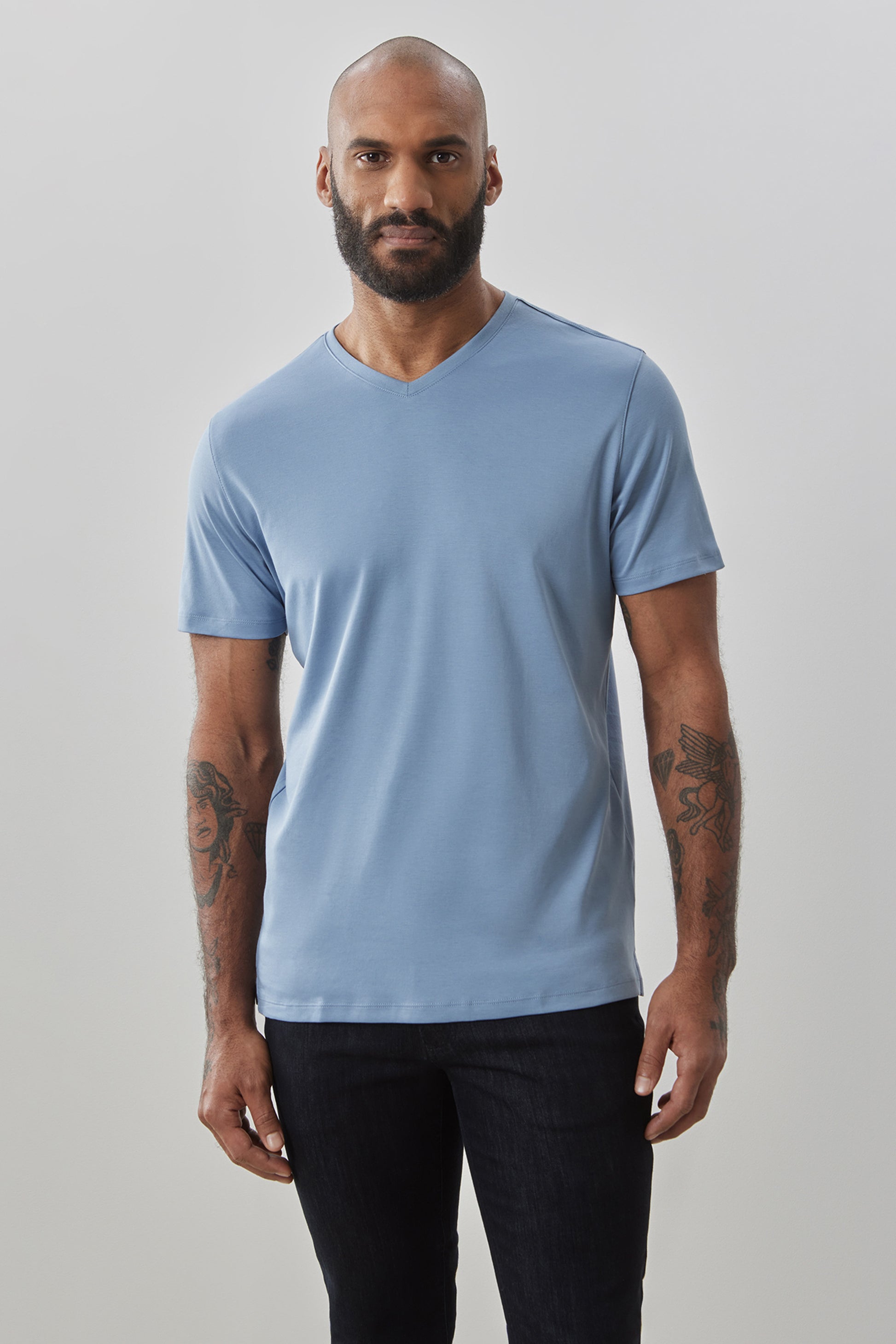Aussi connu sous le nom de t-shirt à col en V Georgia. C'est le frère tout aussi confortable et élégant du Barakett Tee. Fabriqué avec notre tissu Georgia exclusif avec finition Soft Water, c'est le nec plus ultra en matière de confort, de toucher luxueux et d'apparence propre. Une pièce polyvalente dans la garde-robe de tout homme ; rehaussez n'importe quel look avec le col en V le plus confortable qui soit.