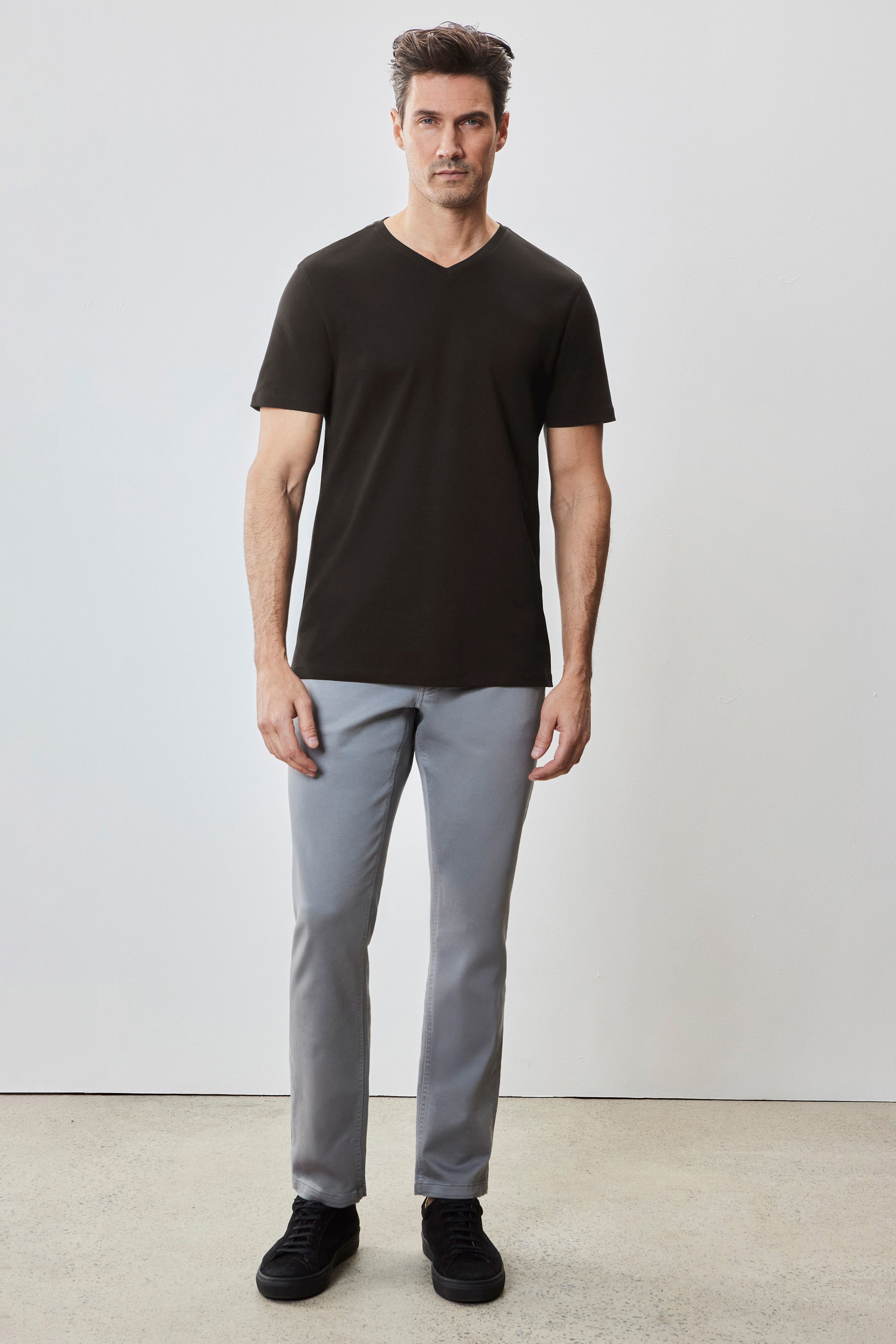 Également connu sous le nom de t-shirt à col V Georgia, il est le frère tout aussi confortable et élégant du t-shirt Barakett. Confectionné dans notre coton Pima signature avec finition Soft Water, il offre un confort ultime, un toucher luxueux et une esthétique soignée. Une pièce polyvalente pour toute garde-robe masculine ; sublimez n'importe quel look avec le col V le plus confortable qui soit.