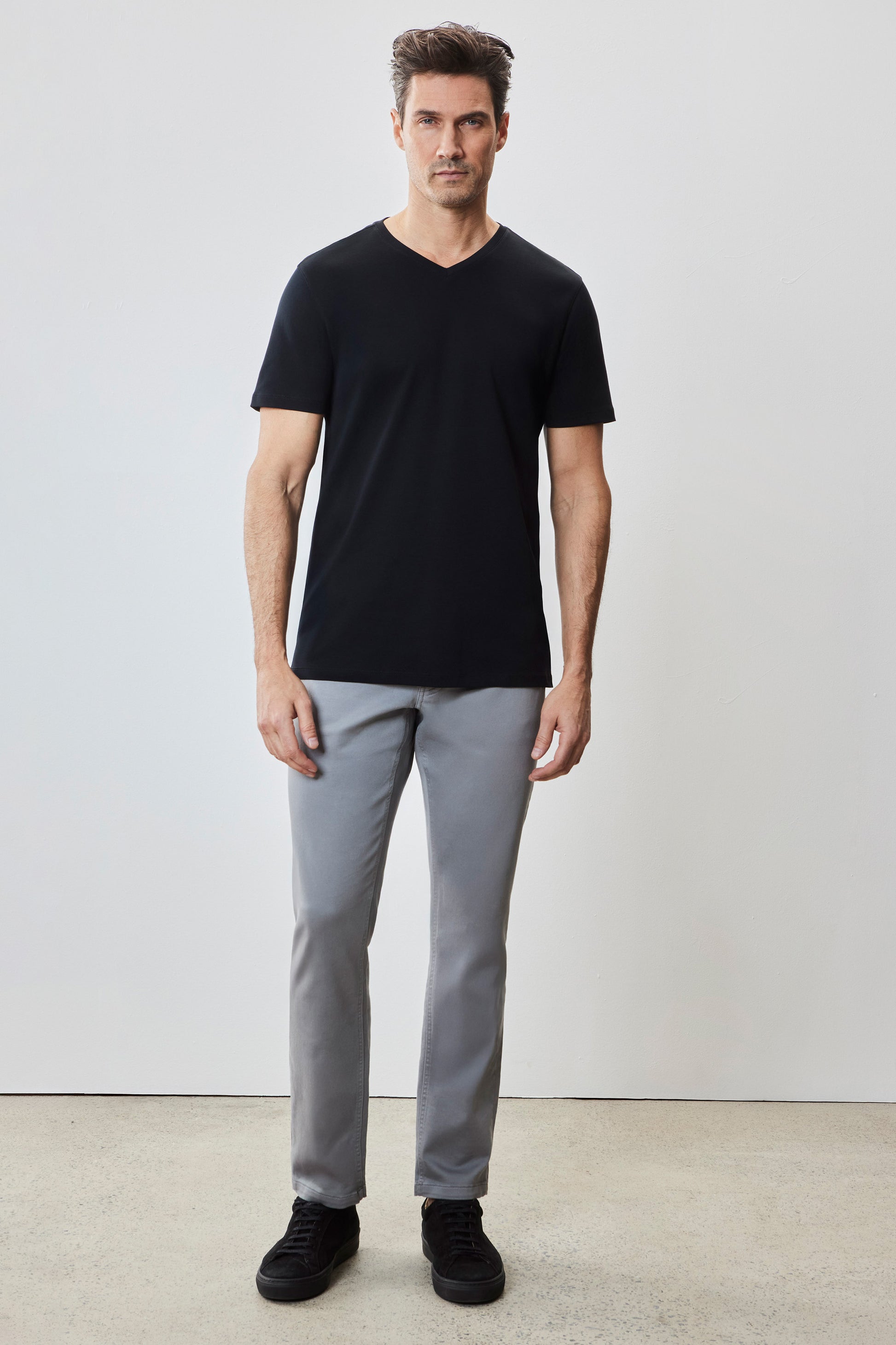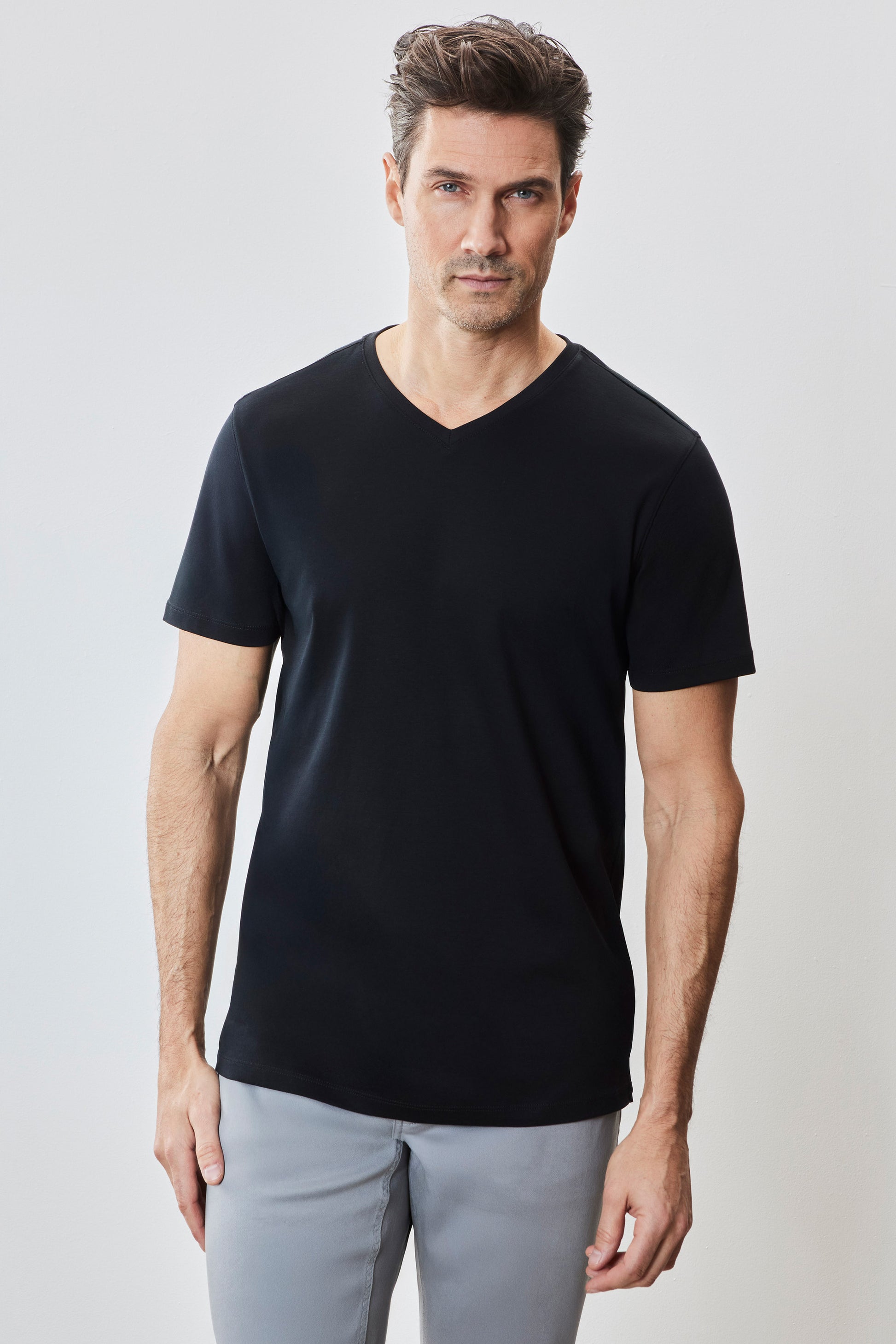 Également connu sous le nom de T-shirt à col en V Georgia. C'est le frère tout aussi confortable et élégant du Barakett Tee. Fabriqué avec notre tissu Georgia exclusif avec finition Soft Water, c'est le nec plus ultra en matière de confort, de toucher luxueux et d'apparence épurée. Une pièce polyvalente dans la garde-robe de tout homme ; rehaussez n'importe quel look avec le col en V le plus confortable jamais créé.