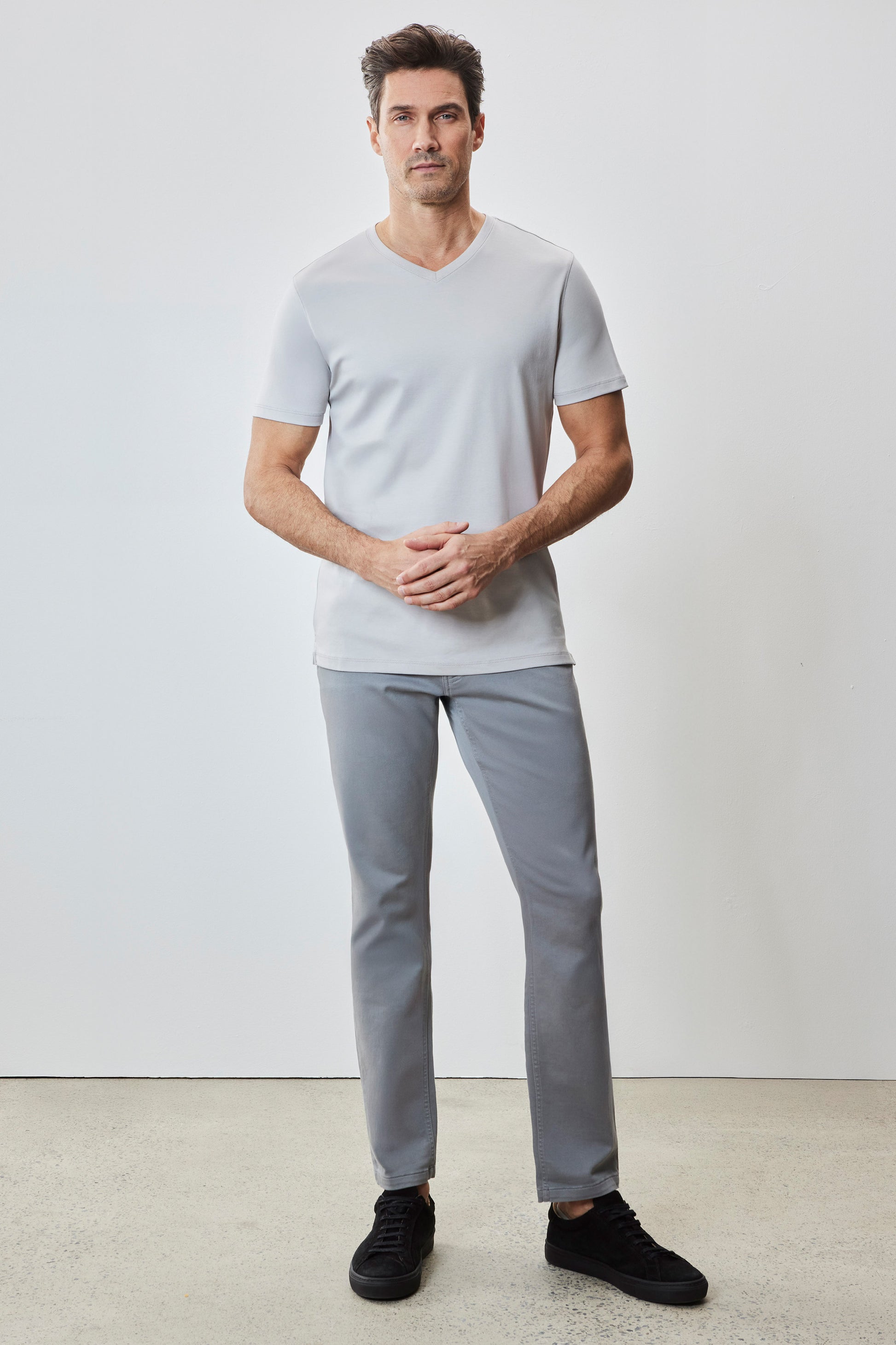 Également connu sous le nom de t-shirt à col en V Georgia. C'est le frère tout aussi confortable et élégant du Barakett Tee. Fabriqué avec notre tissu Georgia exclusif avec finition Soft Water, c'est le nec plus ultra en matière de confort, de toucher luxueux et d'apparence épurée. Une pièce polyvalente dans la garde-robe de tout homme ; rehaussez n'importe quel look avec le col en V le plus confortable jamais créé.