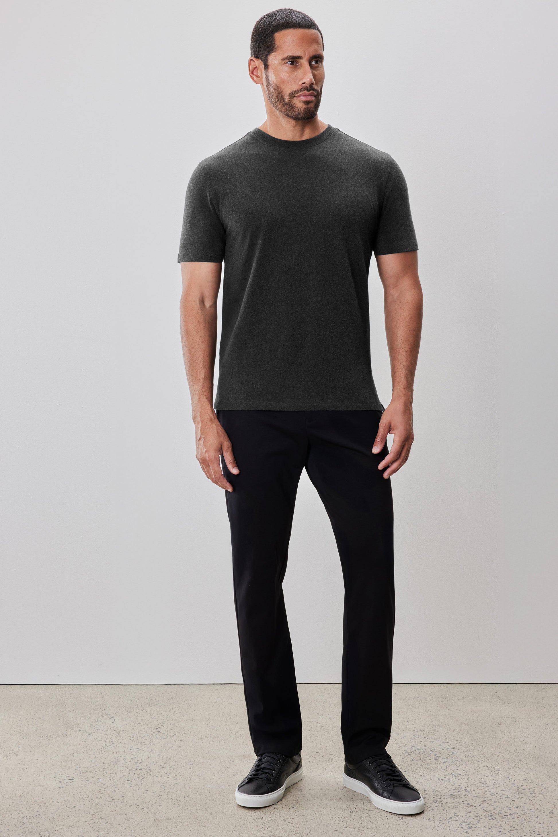 A wardrobe essential, the Barakett Heathered Stretch Tee offers a perfect blend of style and comfort. Crafted with a spandex blend for added stretch, it ensures a snug fit that moves with you. Available in a variety of rich melange colors, this tee is the perfect companion to the  Barakett tee.