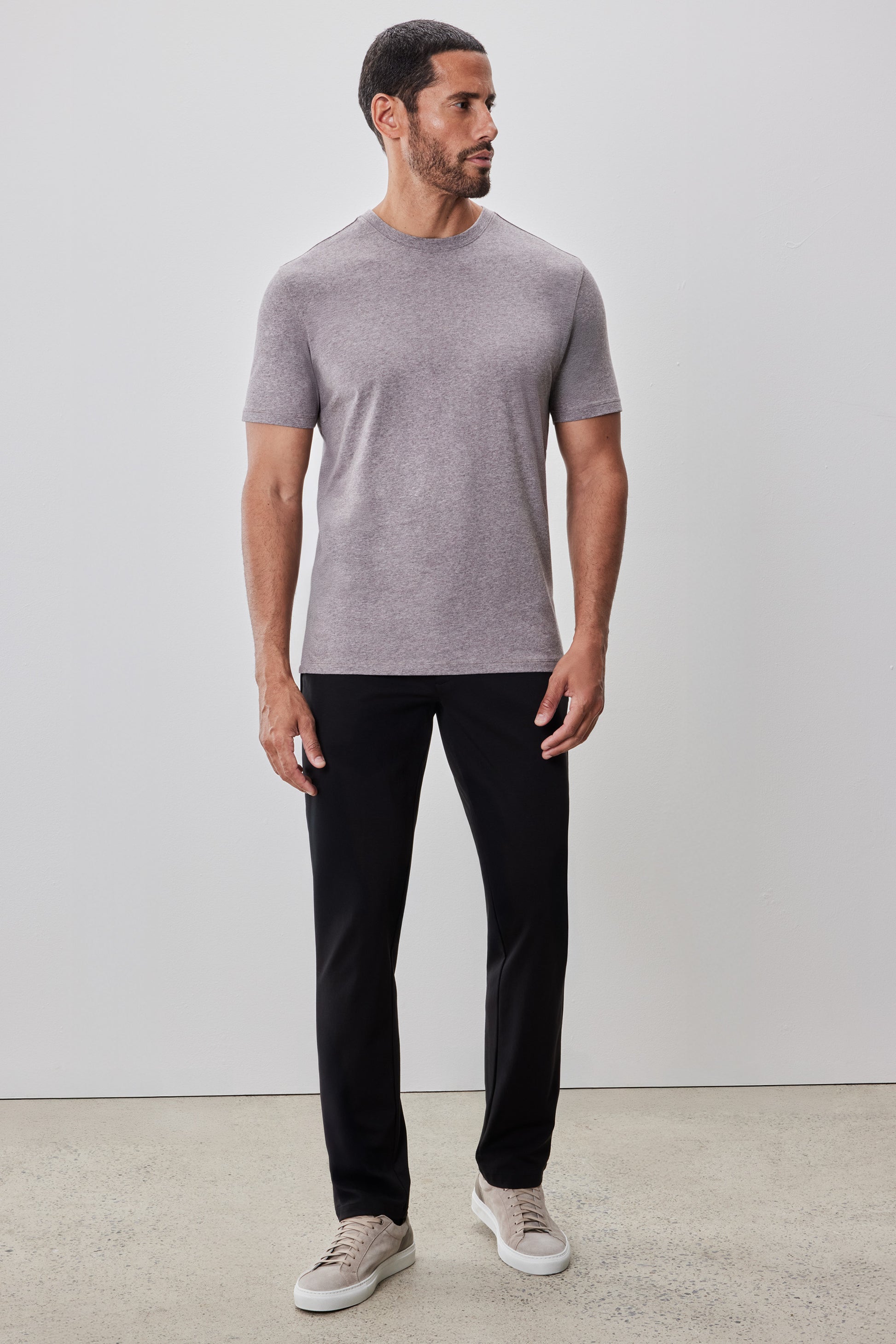 A wardrobe essential, the Barakett Heathered Stretch Tee offers a perfect blend of style and comfort. Crafted with a spandex blend for added stretch, it ensures a snug fit that moves with you. Available in a variety of rich melange colors, this tee is the perfect companion to the  Barakett tee.