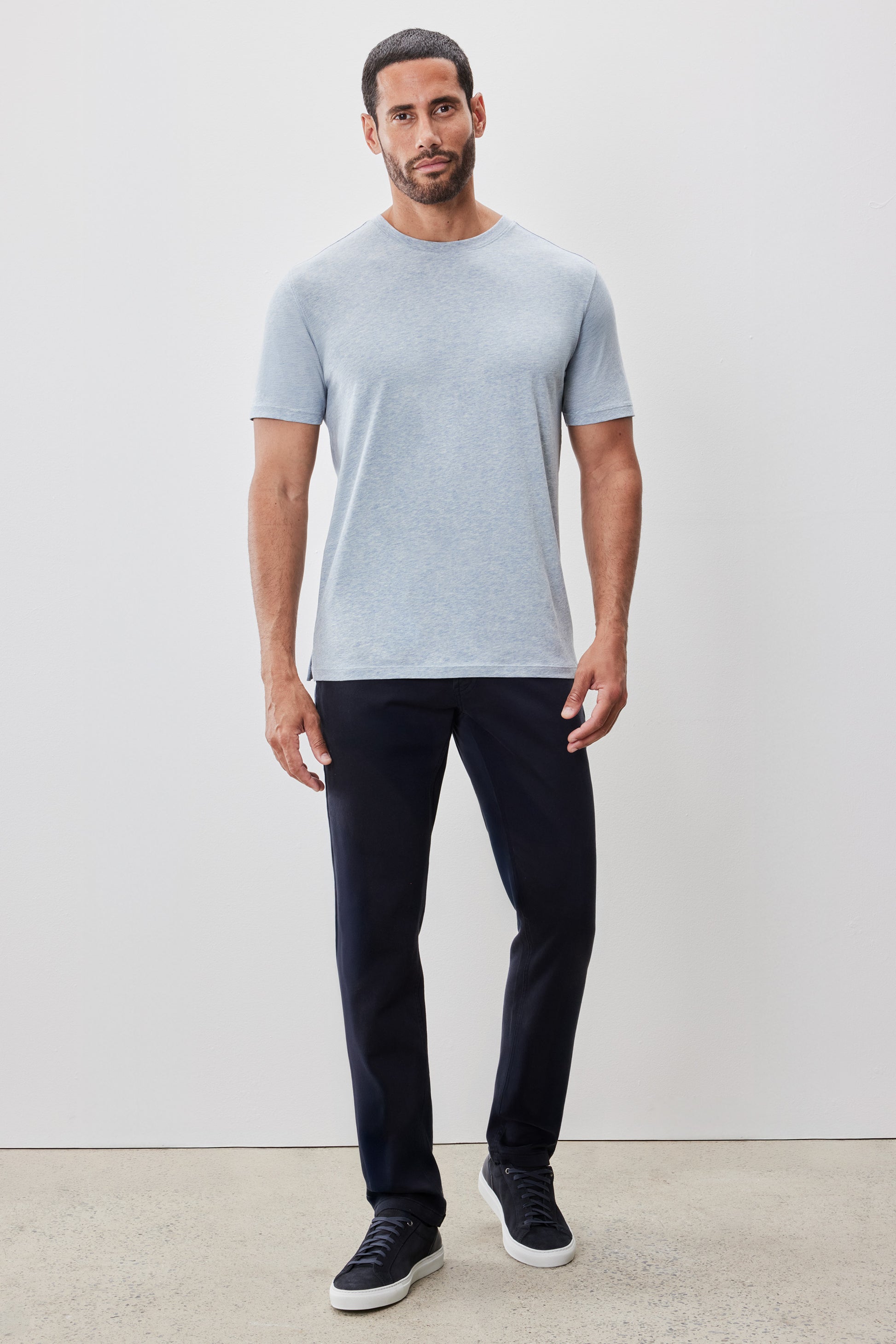 A wardrobe essential, the Barakett Heathered Stretch Tee offers a perfect blend of style and comfort. Crafted with a spandex blend for added stretch, it ensures a snug fit that moves with you. Available in a variety of rich melange colors, this tee is the perfect companion to the  Barakett tee.